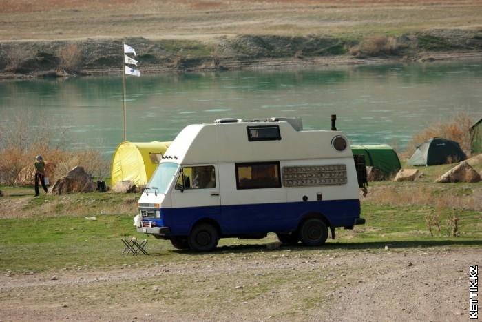 Едем в Капчагай, проезжаем весь город насквозь, проезжаем плотину ГЭС, и на развязке сворачиваем налево в сторону Баканаса. По дороге на Баканас едем до одинокого мотеля слева. Это здание там одно посреди степи — не пропустите. Напротив него сворачиваем направо в сторону реки. Дорога проселочная, но ровная. Часто на ней встречаются развилки и "рукава". Не волнуйтесь — здесь не важно куда сворачивать — все дороги в конце концов ведут туда, куда надо. Эту фотографию я оставлю здесь, чтобы показать, что джип не нужен.