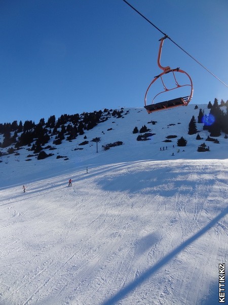 Трассы тут на любой вкус. И широкие и достаточно пологие, хотя эта трасса, называемая тут "детской", длиннее и немного круче, чем учебная на Акбулаке, что гораздо интереснее даже для неуверенно катающихся. К тому же тут не бугель, а кресельная канатка, что облегчает обучение катанию на доске.