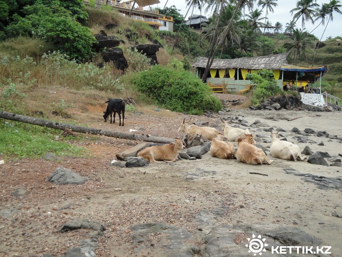 Кстати больше всего обезьян мы умудрились увидеть в Дели. Хотя были там всего пол дня и при этом основную часть времени просто ездили по городу в машине. Их там в парках — просто невероятное количество. Но так как нигде почти не останавливались — сфотографировать не удалось. Коров на пляжах Северного Гоа вообще невероятное количество. Если загораешь на песке — такое ощущение, что ты в этом стаде — свой.