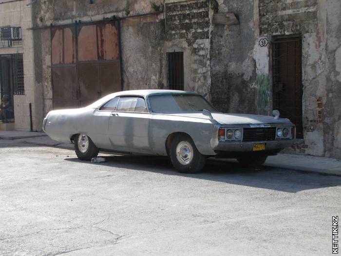 Еще из таких вот "новых" машин, можно посмотреть на этого американца. Этот экземпляр похож на Chrysler Newport 1971-го года, на Ford Mustang и на Dodge Coronet, но точно сказать не возьмусь. Все они похожи, а кубинский тюнинг убивает различия 🙂