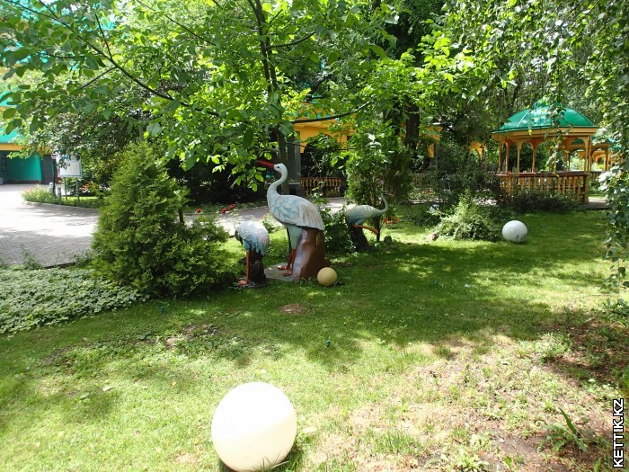 Но удивительно было тут то, что сверху театр, через эту дорожку, почти соприкасается с "совминовской" больницей, которая теперь называется Центральная Клиническая Больница Управления Делами Президента РК. Заведение очень пафосное и как раз тут находится их небольшой, но очень красивый парк или аллея. Ее я пофотографировал сквозь забор — особенно меня привлекли скульптуры.