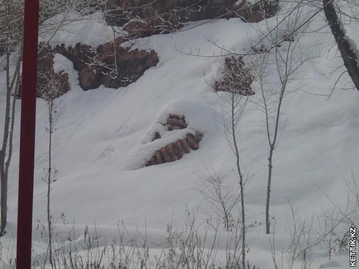 На следующей фотографии на самом деле изображены какие-то древнеегипетские мотивы, но разобрать это можно только рассматривая композицию вживую. На фотографии из-за снега ничего разобрабрать невозможно.