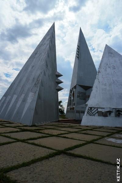 А здесь рядом со звездой надпись на русском и казахском языках: "Слава героев не померкнет в памяти народной 1918-1919"