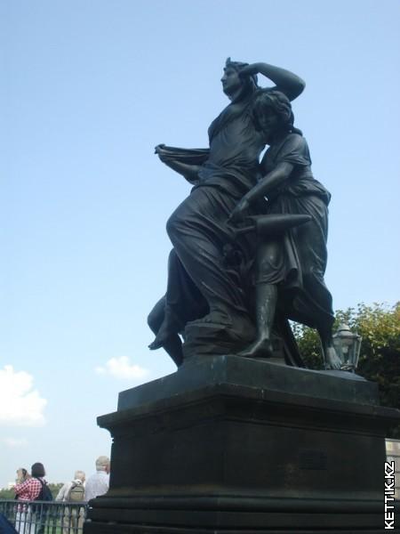 Слева от здания ландтага по широкой лестнице мы поднялись на "Террасу Брюля" — еще одно историческое место, посещаемое туристами. В 1739 году эта земля вместе с потерявшими свою актуальность городскими укреплениями была подарена саксонскому министру графу Генриху фон Брюлю. Использовав остатки военных укреплений как фундамент, Брюль велел создать на этом месте сад для развлечений, дворец, галерею и т.д. А вот открыть сад для свободного посещения горожан и пристроить к ней парадную лестницу была идея русского князя Николая Репнина-Волконского, который в 1814 году, после поражения Наполеона, выполнял роль генерал-губернатора Саксонии.