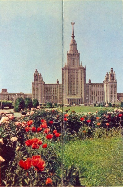 В этом городе работает Советское правительство, здесь заседает высший орган власти нашей страны — Верховный Совет СССР, здесь находится Центральный Комитет Коммунистической партии Советского Союза. В Москве жил и работал основатель первого в истории государства трудящихся В. И. Ленин, столетие со дня рождения которого в 1970 году отметило все прогрессивное человечество. Москва — город-воин, город-герой. Она помнит грозные годы Великой Отечественной войны, когда на полях сражений решалась судьба нашей страны и всего человечества. В облике Москвы неразрывно слились историческое прошлое России и достижения Союза Советских Социалистических Республик. В мозаике четырех с половиной тысяч московских улиц вы встретите самые разные архитектурные стили. Рядом со старинными храмами, блещущими золотом куполов, поднимаются здания сегодняшней строго продуманной и рациональной архитектуры. У древних стен Кремля — чеканный и торжественный Мавзолей В. И. Ленина; он стал неотделимой священной частью прекрасного ансамбля Красной площади. Слева, из-за «плеча» собора Василия блаженного проглядывает громада самой большой в Европе гостиницы «Россия». В Кремле, среди исторических башен и дворцов, поднялся белоснежный, сияющий зеркальными стеклами Кремлевский Дворец съездов — место проведения крупнейших всесоюзных и всемирных конгрессов, партийных съездов, конференций, митингов и фестивалей. Над кружевом арбатских переулков, многие здания которых — творения замечательных русских зодчих XVIII-ХIХ веков, взметнулись ввысь дома проспекта Калинина. В конце его, у самого моста через Москву-реку — легкое и стремительное здание СЭВ, штаб-квартира могучего экономического содружества стран социалистического лагеря. Расходясь от центра города во все концы, выросли и продолжают расти кварталы районов-новостроек — Юго-Запада и Черемушек, Нагатина и Измайлова, Химок и Хорошева, Медведкова, Рублева и др. В Москве каждый день справляется 400 новоселий, а в год москвичи получают почти 150 тысяч новых квартир.