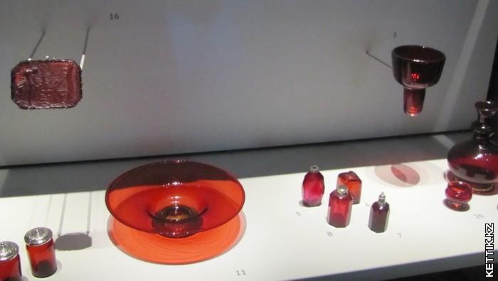 А еще есть витрины со стеклянными изделиями старых мастеров.
