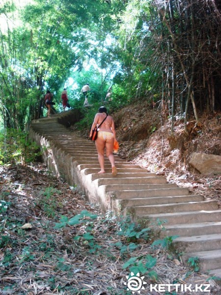 А нам предстояло прогуляться в деревню монов и буддийский монастырь. Чтобы выбраться из каньона, на дне которого располагался отель, нам пришлось долго подниматься по вот такой лестнице.